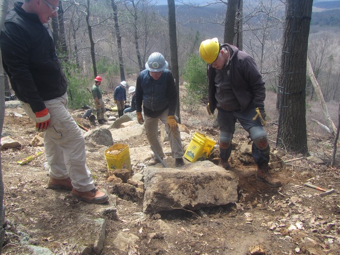 Back at the steps, work continues