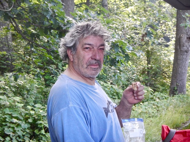 having a morning snack after a night in his tent. Lou lives 3 hr. away so he likes to camp out rather than drive home
