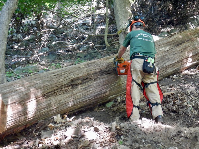 Erik cutting this log to clear the path