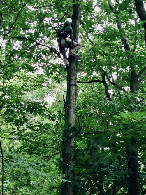 Our new stick ladder enables us to go higher in the tree than the extension ladder
