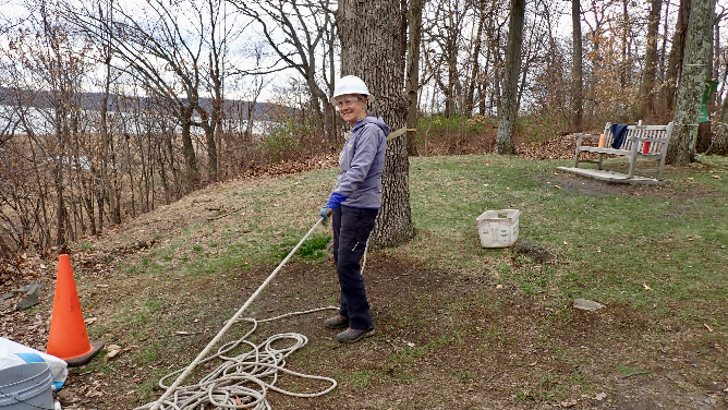 Using a belay, Sandy will guide it