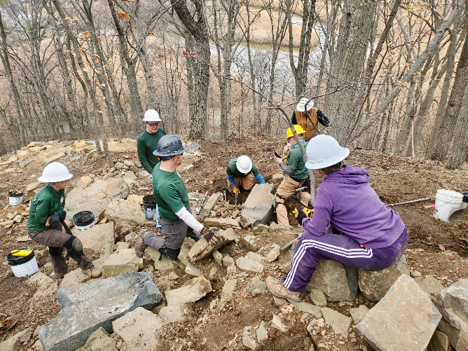 To our worksite where the rocks are being used,