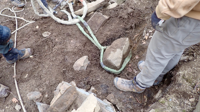 big rock stuck in the very wet ground