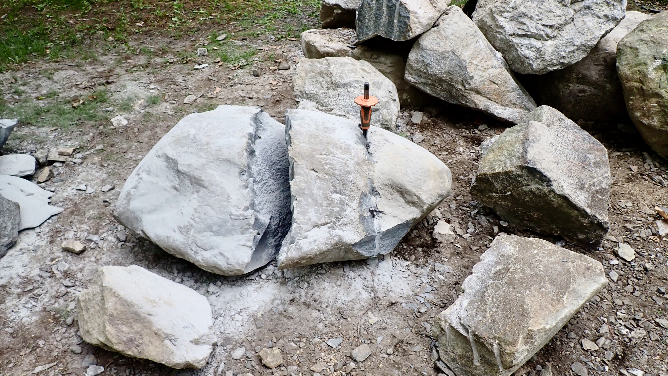 Over the last two weeks, several crew members have stopped by and tapped on the chisel, and the feathers and wedges, but no cracks appeared. That's one hard rock.