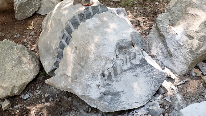 To free the remaining feathers and wedges, several additional holes were needed